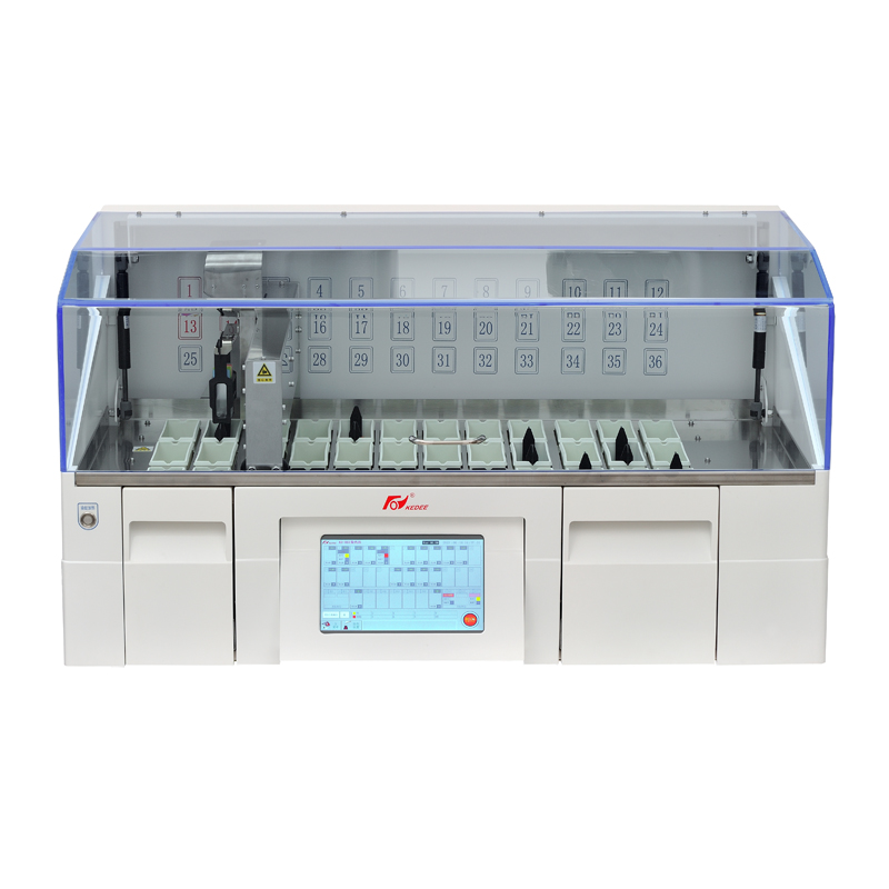 ◇ 高效的流水式染色进程,连续、循环出片,一小时染片量最多可达400张